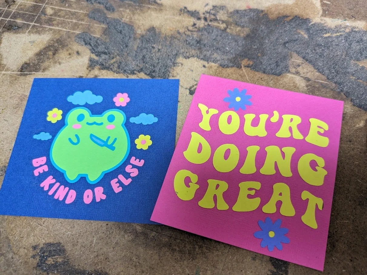 Ditch the scissors. The Silhouette Cameo follows paths to cut out paper, cardstock, adhesive vinyl, or heat-transfer vinyl. The free software is incredibly powerful, able to turn any silhouette or your text into a path for the blades. Just like with the Glowforge, members receive training & support to make tshirts/tote bags, stickers, vinyl decals, cards, and a whole lot more!