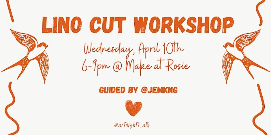 Make At Rosie is thrilled to partner with ATX Art Nights for this event! Please note that tickets for workshops and events are purchased directly from the artist or instructor hosting them. Make At Rosie Makerspace is a venue provider only and does not manage ticketing or refunds. For any questions about tickets, refunds, or workshop details, please contact the event host directly.